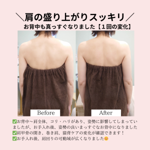 バストアップができるのはもちろん嬉しいですが、巻き肩ケアもできるので、肩が開き、綺麗な姿勢に導いてあげることができるんです😍❗