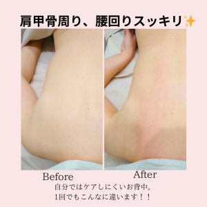 当店で、かなり人気の『背中・二の腕美姿勢マッサージ』のBefore-Afterの写真をご覧ください☆