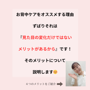 今日は、見た目の変化が得れるだけではない、お背中ケアの魅力についてお話していきたいと思います。