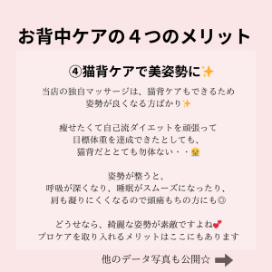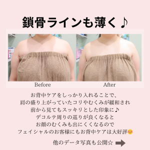 今日は、フェイシャルのお客様にとても人気のお背中ケアのデータ写真を紹介したいと思います。