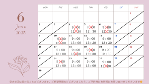 6月4日時点でのサロンの空き状況のお知らせです☆