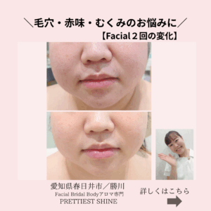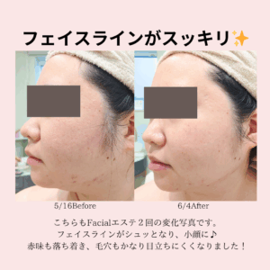 こちらは、Facial2回(3週間に1回ペース)のモニター様の変化写真になります。