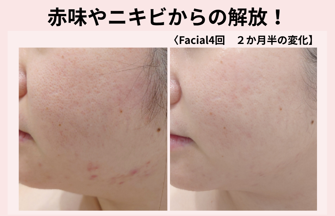 今日は、ニキビに長年お悩みだったお客様のお肌の変化を紹介させて頂きます。