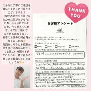 新たなニキビが出なくなったこともお客様にとって大きいと思いますが、それより何より『気持ちが前向きになった』というのは、凄い事なのではないかなと私は思います!