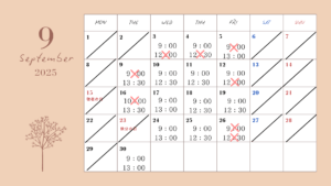 ※基本的には①9:00~②12:00 or 13:00~の二部制となりますが、営業時間(平日火~金の9:00~15:00)内であれば、記載以外の時間のご予約も承ります。ご希望時間がございましたら、ご予約時にお気軽にお問い合わせください😊