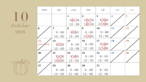 10月のサロンの空き状況のお知らせ(10/1時点)