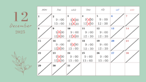 12月のサロンの空き状況のお知らせです。