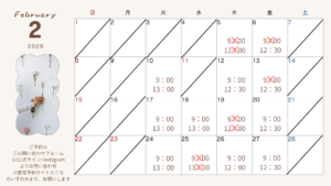 2月のサロンの空き状況のお知らせです♪(2/5時点)