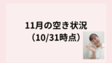 本日9/10(火)、現時点でのお店の空き情報をお知らせいたします。
