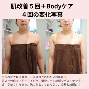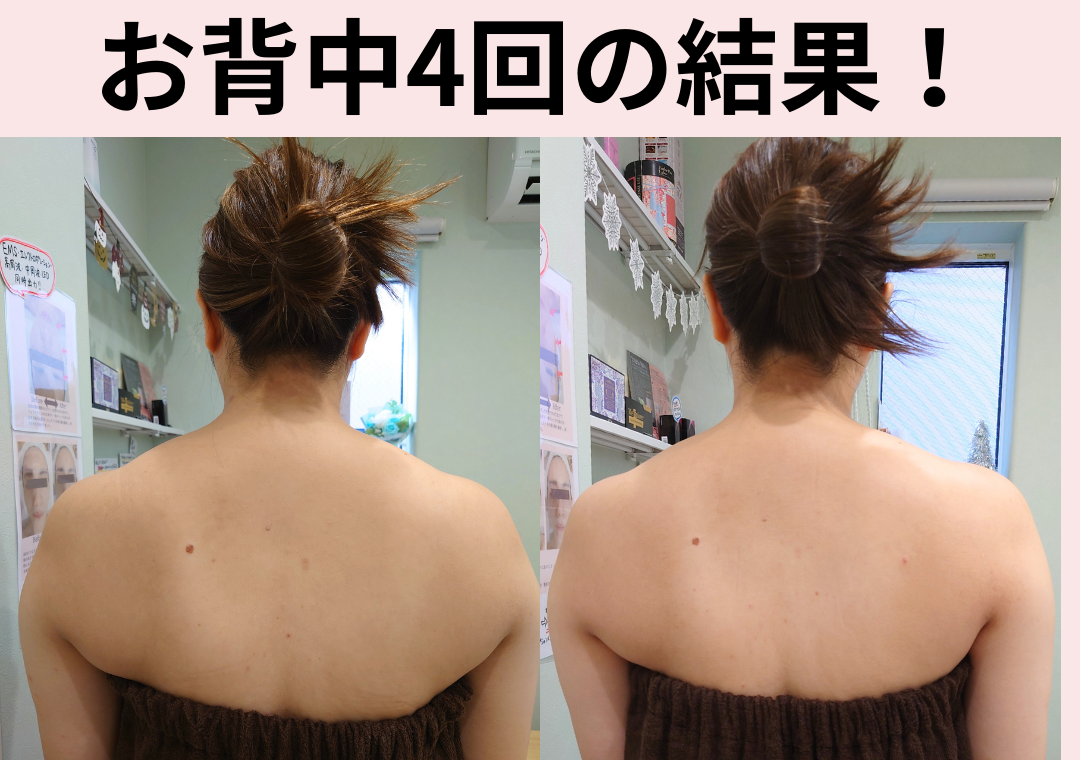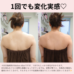 この4回施術で、肩・首回り、お背中全体、二の腕、肩甲骨周りと、お背中が別人のように変わっているのがお写真でもしっかりとご確認頂けるかと思います❗