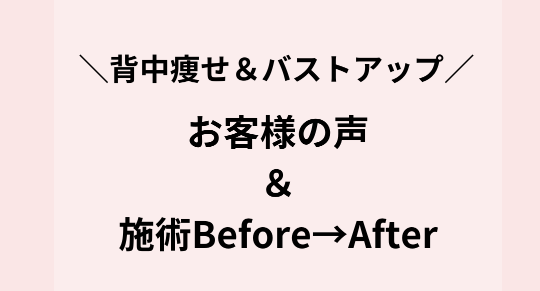 当店のメニューでは、お背中や二の腕に流れてしまっている脂肪を、バストの方に戻しながらラインを整えていくので、出るところは出す、引き締めるところは引き締める、というスタイルを良くしたい方にぴったりな内容となっています!